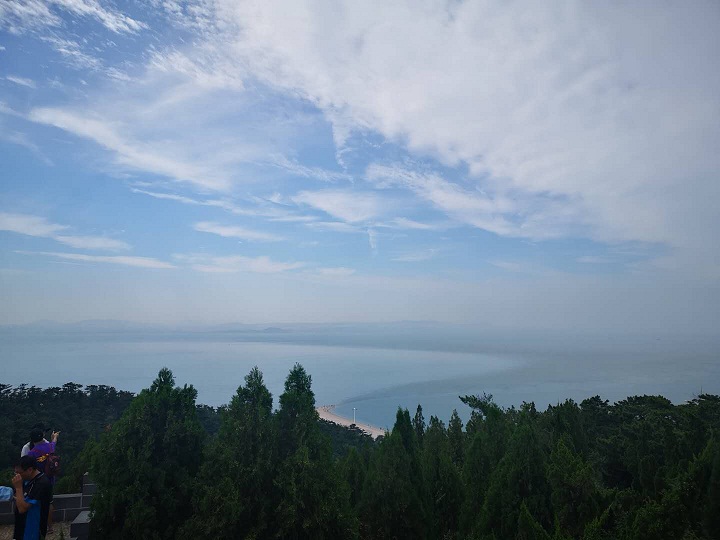 第三天上午,這次旅程的終點(diǎn)站長島南線烽山林海。站在烽山頂處登高遠(yuǎn)眺,長山列島歷歷在目,船姿鷗影盡收眼底。下山途經(jīng)林海公園最有意義的景觀——黃渤海交匯處。在這里看到了一海碧水分為兩個(gè)世界,涇渭分明。